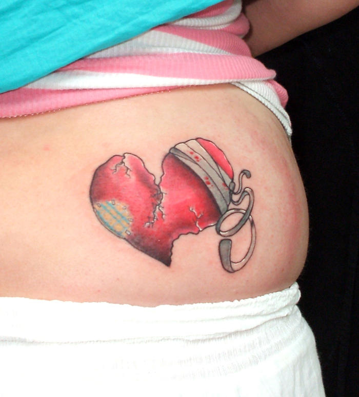 A broken heart tattoo design is much better option for people who fail in love. After this is done theyll apply a tattoo bandage to protect you from bacteria and keep your ink covered for a certain period. The Band Aid tattoo represents this wound and by facing it every day the wound becomes easier to deal with.